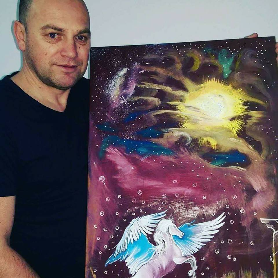 It all started 10 years ago, when a friend of my family, brought some painting made by him to see them, with saints and a lot of holy elements, and i completely fall in love wiht them, realising later, that i didn't like just the images, but i started to become curious about all the work behind, and how the process of creation works. So i asked my parents to by me some stuff that i needed to paint, and i start immediately to put down my imagination. It became mind-blowing, when i realise how much i love it, and what an awesome meaning gave to my life.