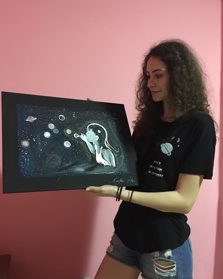 Agreat thing was the fact, that i got inspired by everything around me, specially the nature, and also the surrealism, stars, abstract shapes, combining different elements. Practicing day by day, i got more experienced in details, shades, emphasizing different points, color, and aspects.